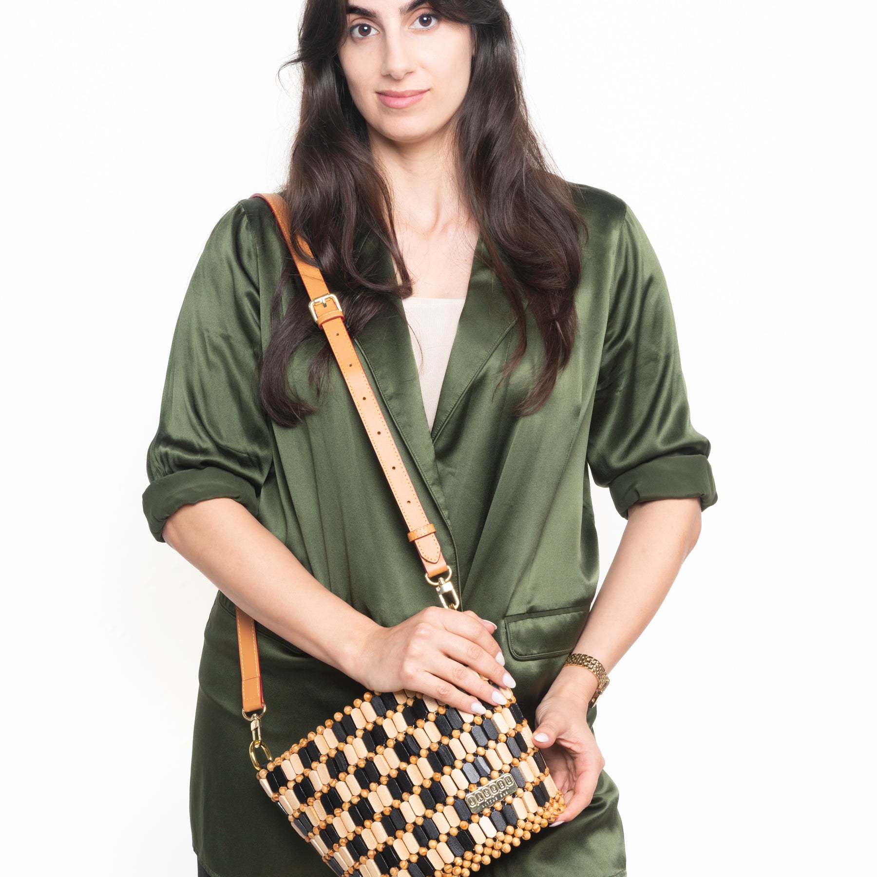 The Earth Sister is the colour of ebony and sunlit sand. A structured crossbody that honours quiet strength and graceful resilience.